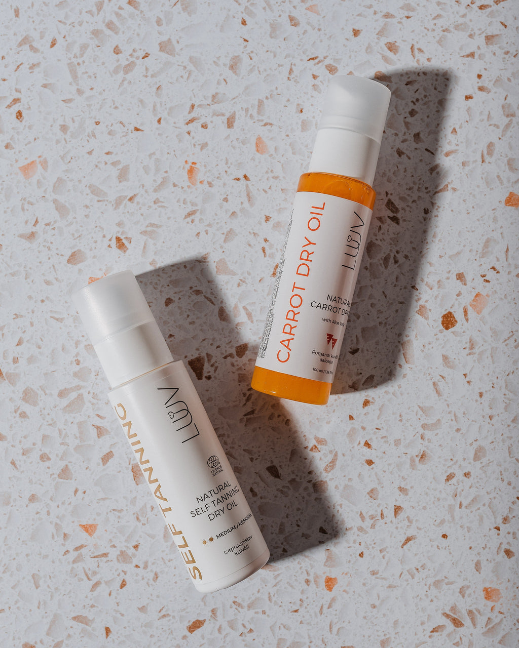 Dok pruža preplanuli ten, naše suho ulje za samotamnjenje također njeguje vašu kožu – ulje mrkve dubinski hidratizira, aloe umiruje, a antioksidansi zajedno s vitaminom E pomažu održati mladenačku kožu. Osim toga, sadrži prirodne sastojke za samotamnjenje koji ne isušuju kožu i pogodni su čak i za osjetljivu kožu. LUUV-ovo prirodno suho ulje za samotamnjenje pretvorit će vas u pravu božicu sunca!